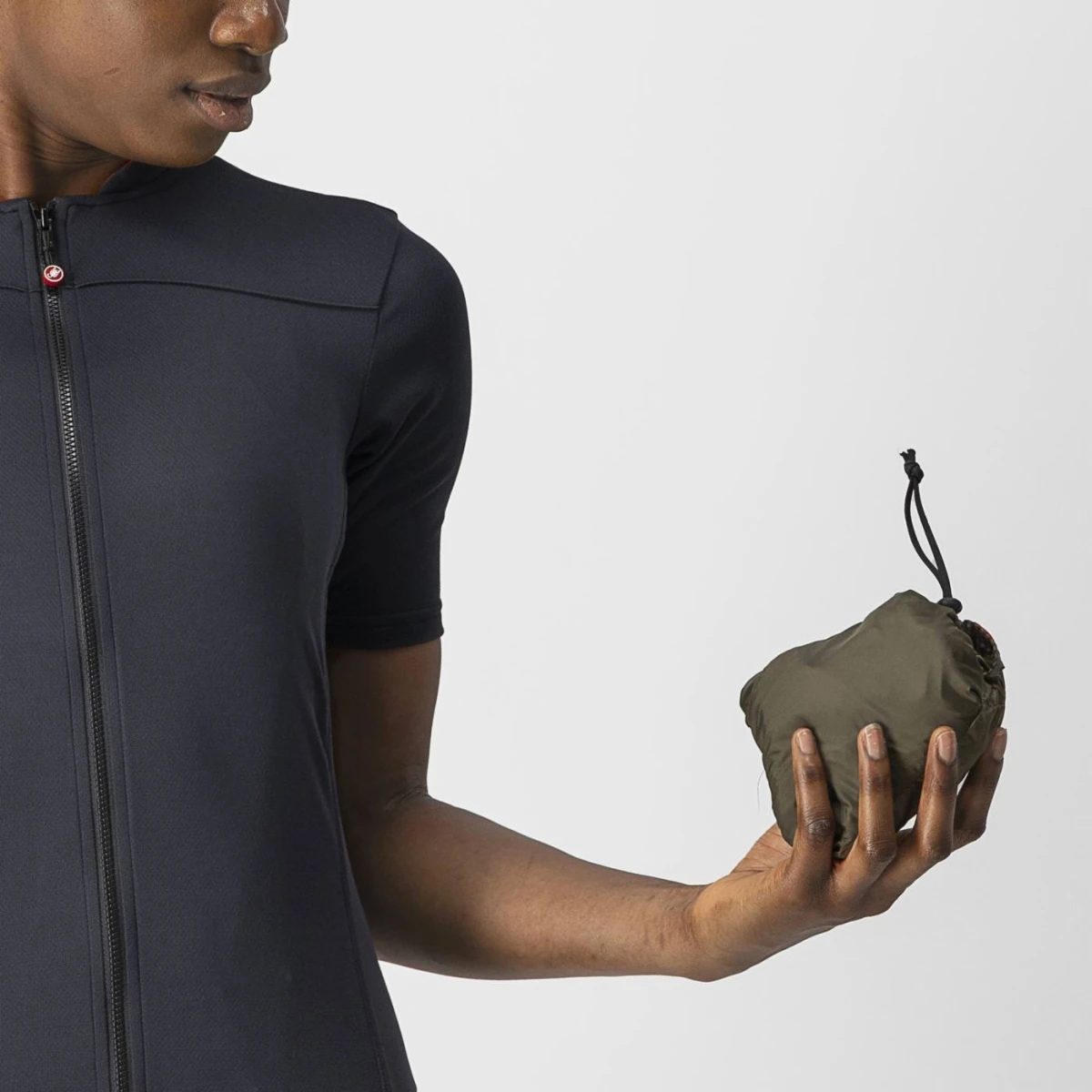 - Tejido de microfibra, ultraligero y cortaviento en la parte delantera