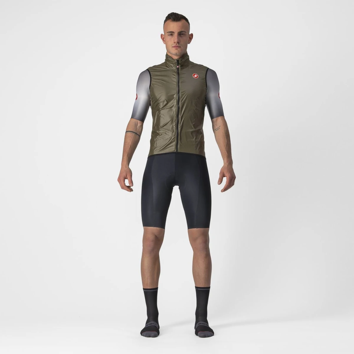 - Tejido de microfibra, ultraligero y cortaviento en la parte delantera