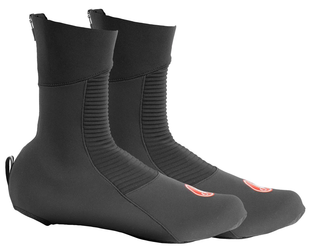 The Castelli Entrata Shoecover will keep you comfortable on the bike, even when the weather tries its to make the ride seem not so worth it. Rated for temperatures down to 39掳 F, a fleece lining and water-repellant layer help maintain warmth and dryness. The ribbed front panel further increases comfort by allowing the ankle to bend more easily during pedaling.