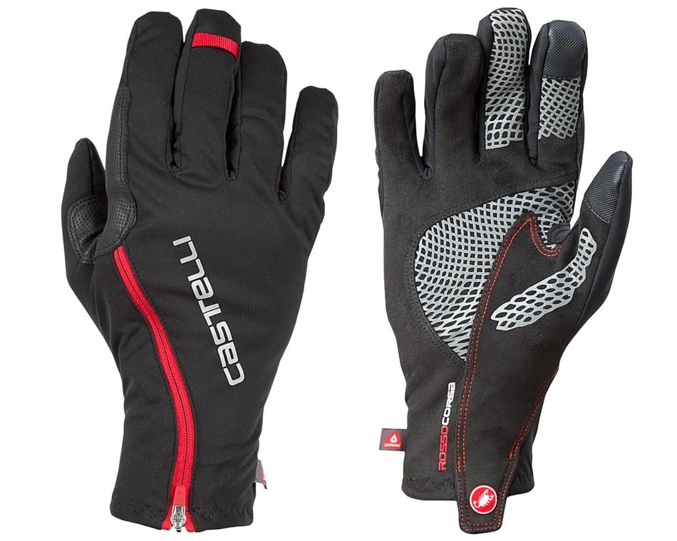 The creation of the Spettacolo RoS Glove started with a list of the things Castelli wanted to fix about winter gloves: they wanted to make a glove that’s warm without being bulky, make it easy to get on and off, make it mostly waterproof without having it suck in dry weather due to low breathability, and make it super comfortable. Castelli innovated everything on this glove, starting with the base fabrics: they used a stretch water-resistant windproof outer shell over PrimaLoft Gold insulation to make it warm, and an insanely soft inner liner that happens to slide easily over even a sweaty hand for easy on/off. The wrist zipper allows the glove to open almost completely for ingress/egress and also slims up the glove so it doesn’t look like a ski glove, even though it’s good for moderately cold temperatures.
