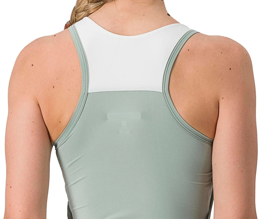 The Castelli Solaris Top is the best option for evening rides in the hot summer months. The top features a wrap construction across the front with an elastic band under the bust, but with the racer back construction, it still works well with sports bras.