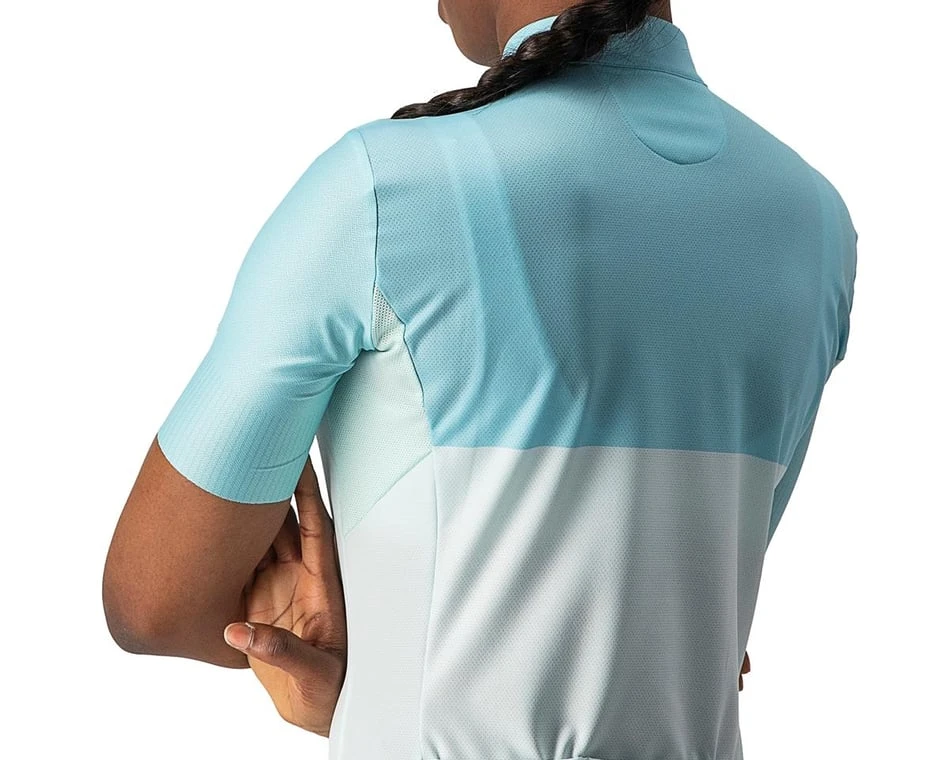 The name Velocissima means very fast in Italian, and indeed there’s a lot of speed in this jersey, even though it wasn’t designed as a race jersey. The main jersey fabric is a soft 100% polyester micromesh with Castelli’s ProSecco wicking treatment to keep you dry. Side panels are in a stretch mesh for ventilation and improved fit. The sleeves are lifted directly from Castelli’s pro race jersey, but in this case because the four-way-stretch fabric with raw-cut sleeve endings is as comfortable as it is aerodynamic. The Velocissima Jersey is not lacking in technical details, but it was also designed to look good. The fabrics are piece dyed for rich color, and then they get a sublimated overprint for the tone-on-tone graphic over the shoulders. It’s finished with construction details like the three pockets that drop below the silicone waistband for easier access, while the easy-sliding YKK® zipper makes ventilation adjustment easy.
