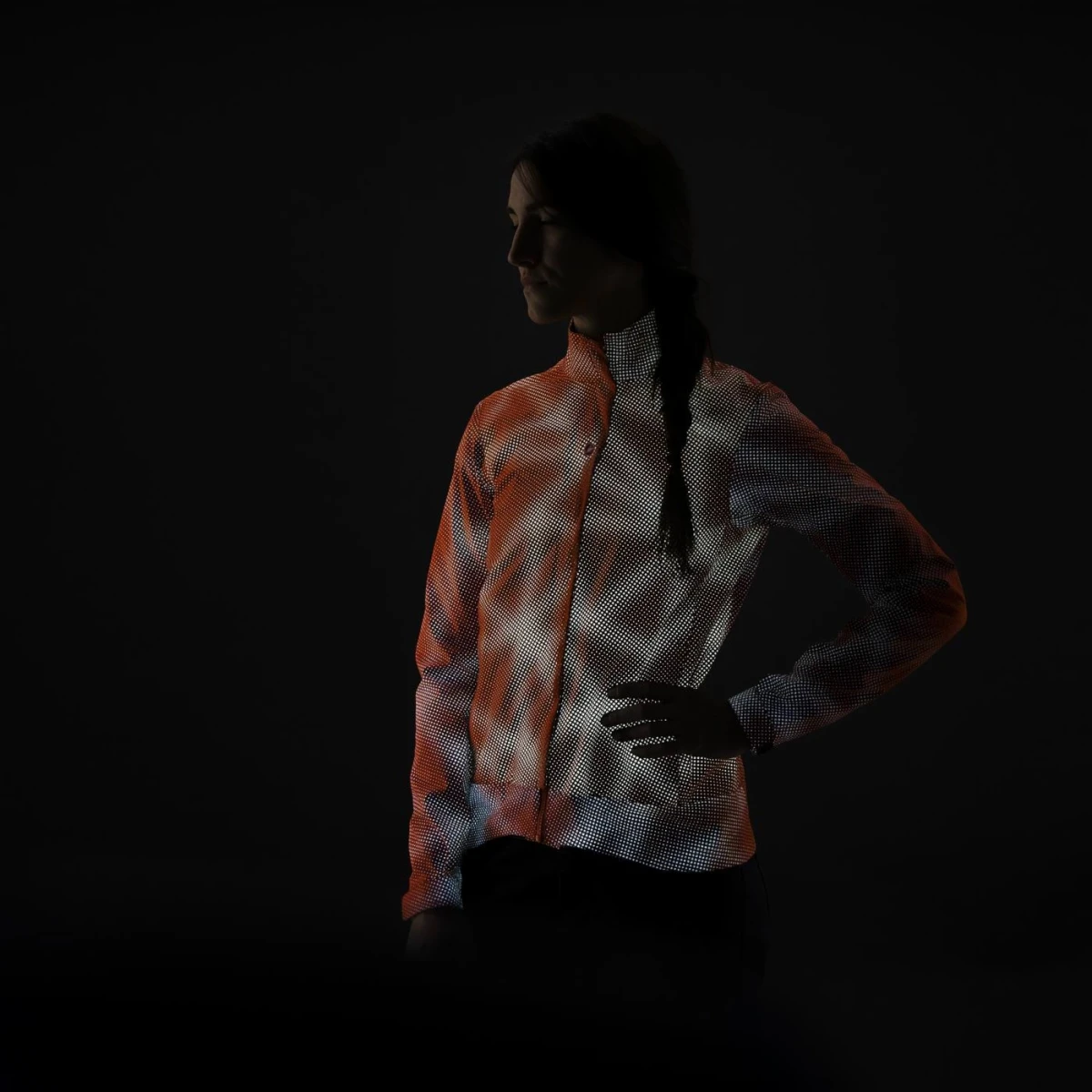 - El tejido reflex de 3 capas y exclusivo de Castelli garantiza una resistencia a la columna de agua de 20 000 mm y una transpirabilidad de 20 000 g/m²/24h