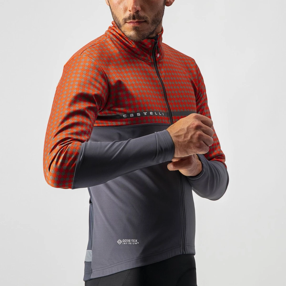 - GORE-TEX INFINIUM™ WINDSTOPPER® X-Fast fabric with fleece liner on upper front, upper back and upper arms
