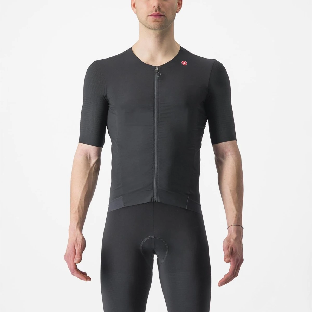 - Panel en tejido de rejilla elástico y acanalado en el hombro para mantener el cuerpo fresco y confortable, a la vez que garantiza aerodinámica