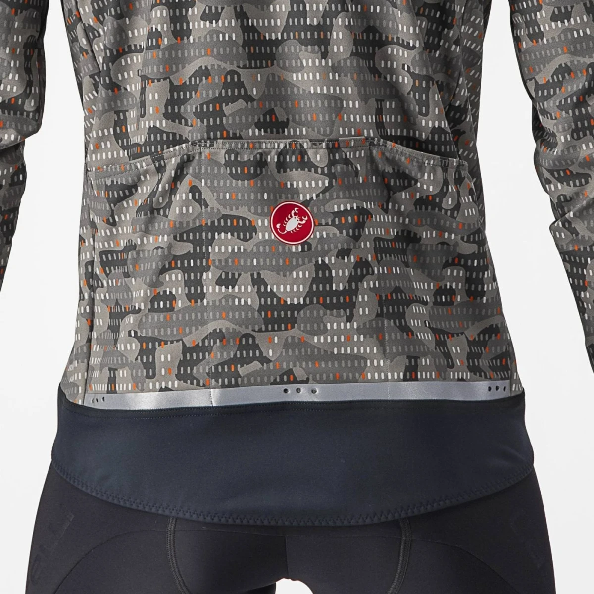 - Tejido peinado impermeable GORE-TEX INFINIUM™ WINDSTOPPER® 205 Warm, exclusivo de Castelli, en la parte delantera
